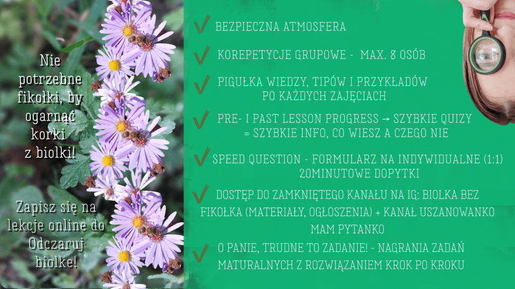 Korki z biolki w grupie 8 osób (4 zajęcia po 90 minut): 600 zł/miesiąc